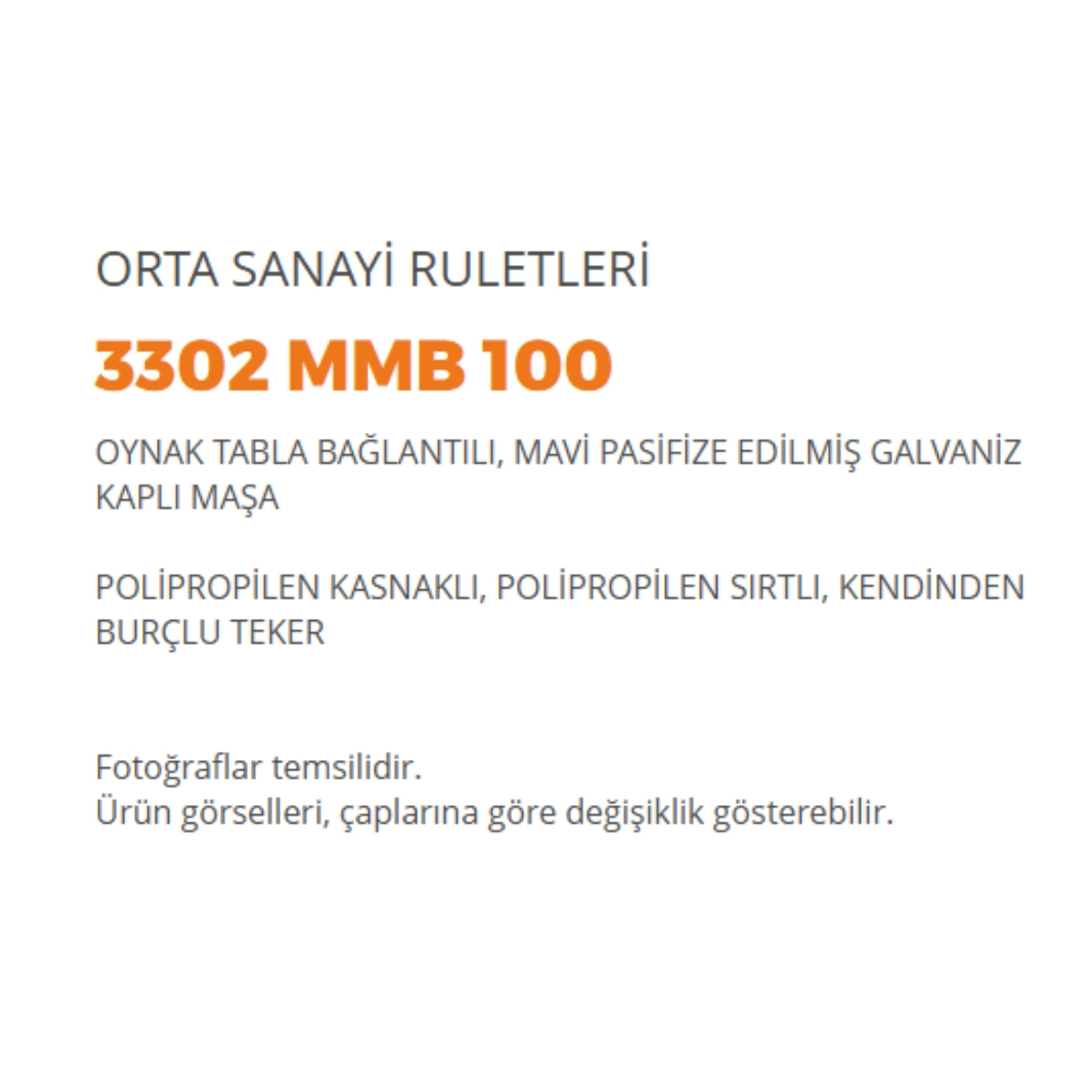 3302 Mmb 100 Oynak Tabla Bağlantılı, Mavi Pasifize Edilmiş Galvaniz Kaplı Maşa Polipropilen Kasnaklı, Polipropilen Sırtlı, Kendinden Burçlu Teker