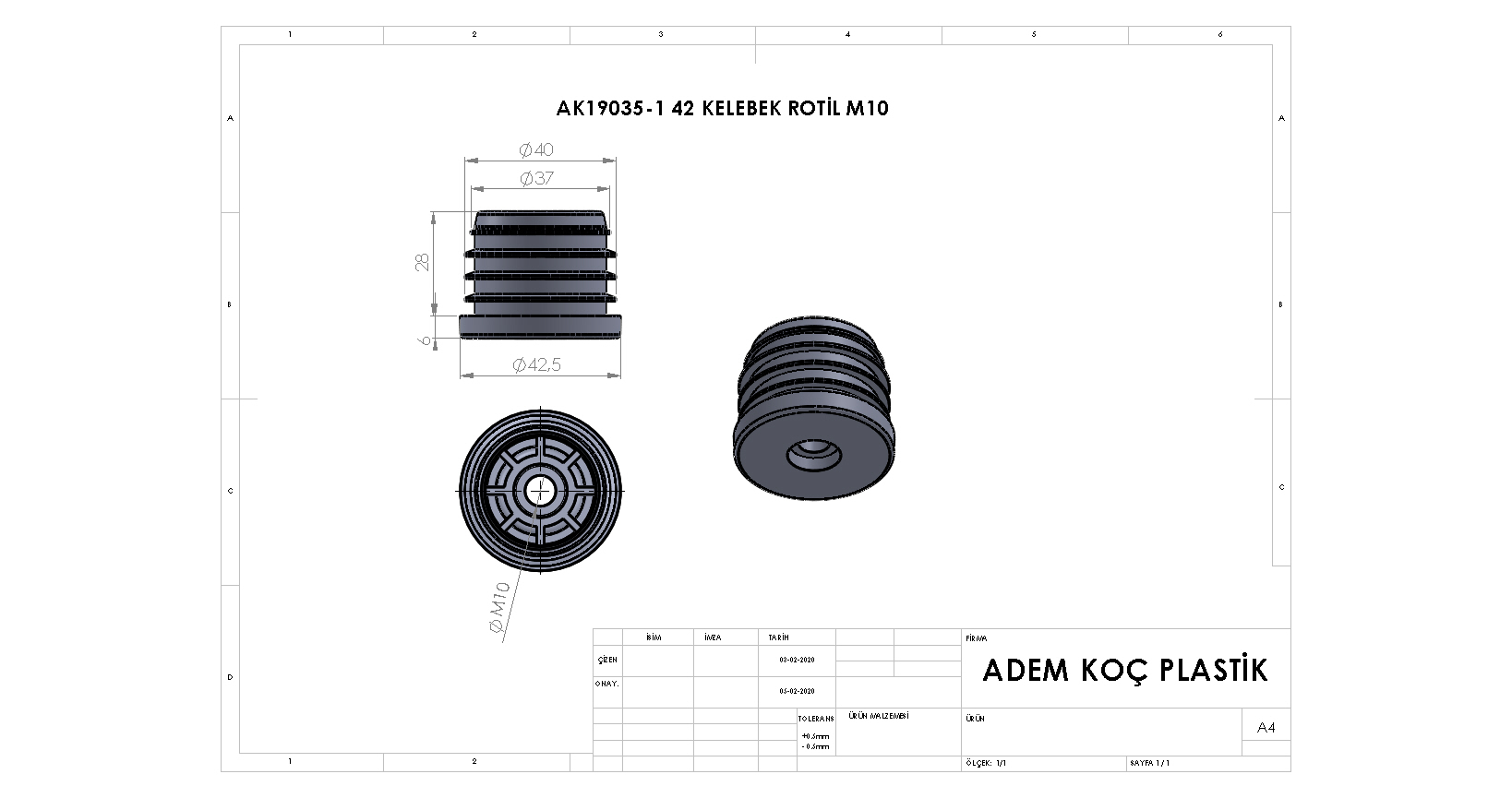 42 Mm Kademeli Plastik Rotil Gövdesi M10 Siyah