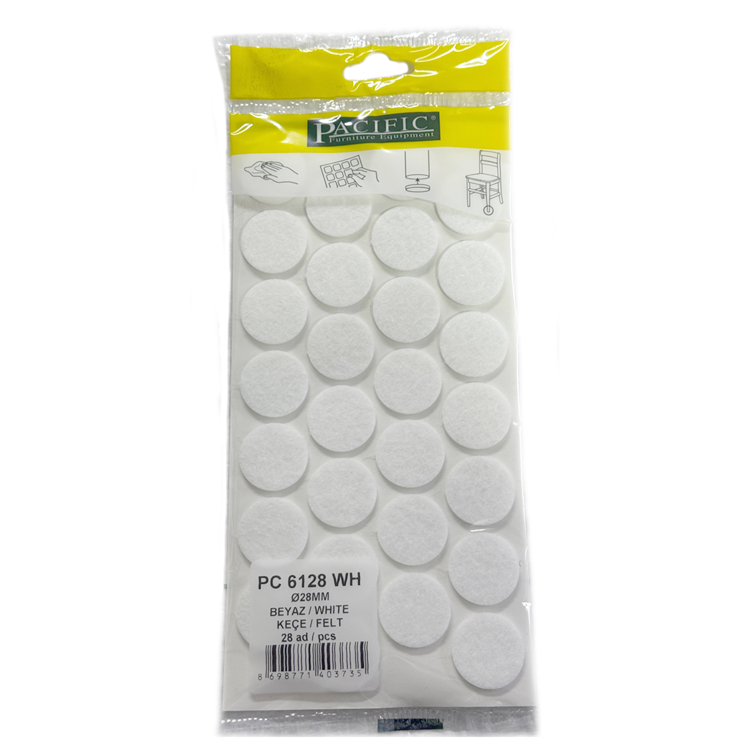 Pacific Yuvarlak Yapışkanlı Sandalye Koltuk Mobilya Ayak Keçesi Felt 28 Mm Beyaz